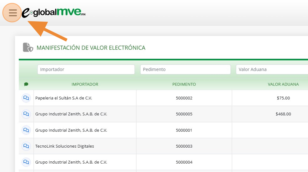 - Perfil Ejecutivo AA: Permite al agente aduanal accesar a uno o más importadores.