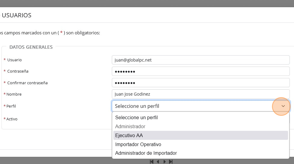 Los usuarios en e-globalmve.mx son las personas que tendrán acceso a la información del sistema. A cada usuario se le asigna un perfil, esto permite definir el acceso o permisos que tendrá dentro del sistema.