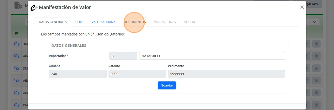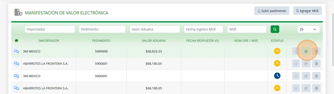 1. Para integrar documentos a una Manifestación de Valor, en el monitor principal de MV dar click en Editar.