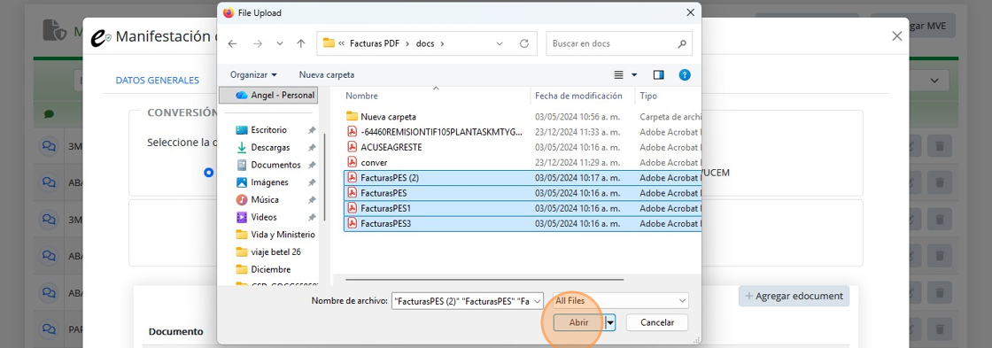 5. Después ubique los archivos desde su ordenador, selecciónelos y agréguelos.